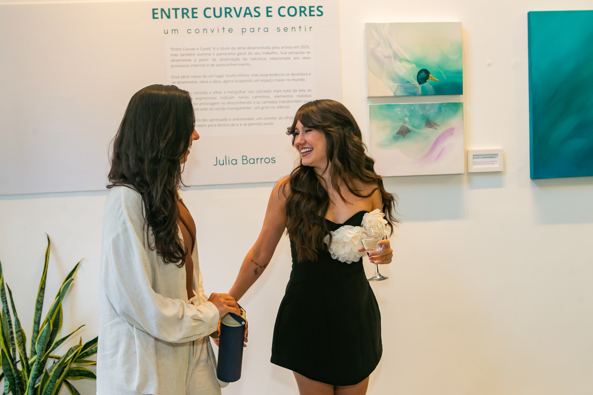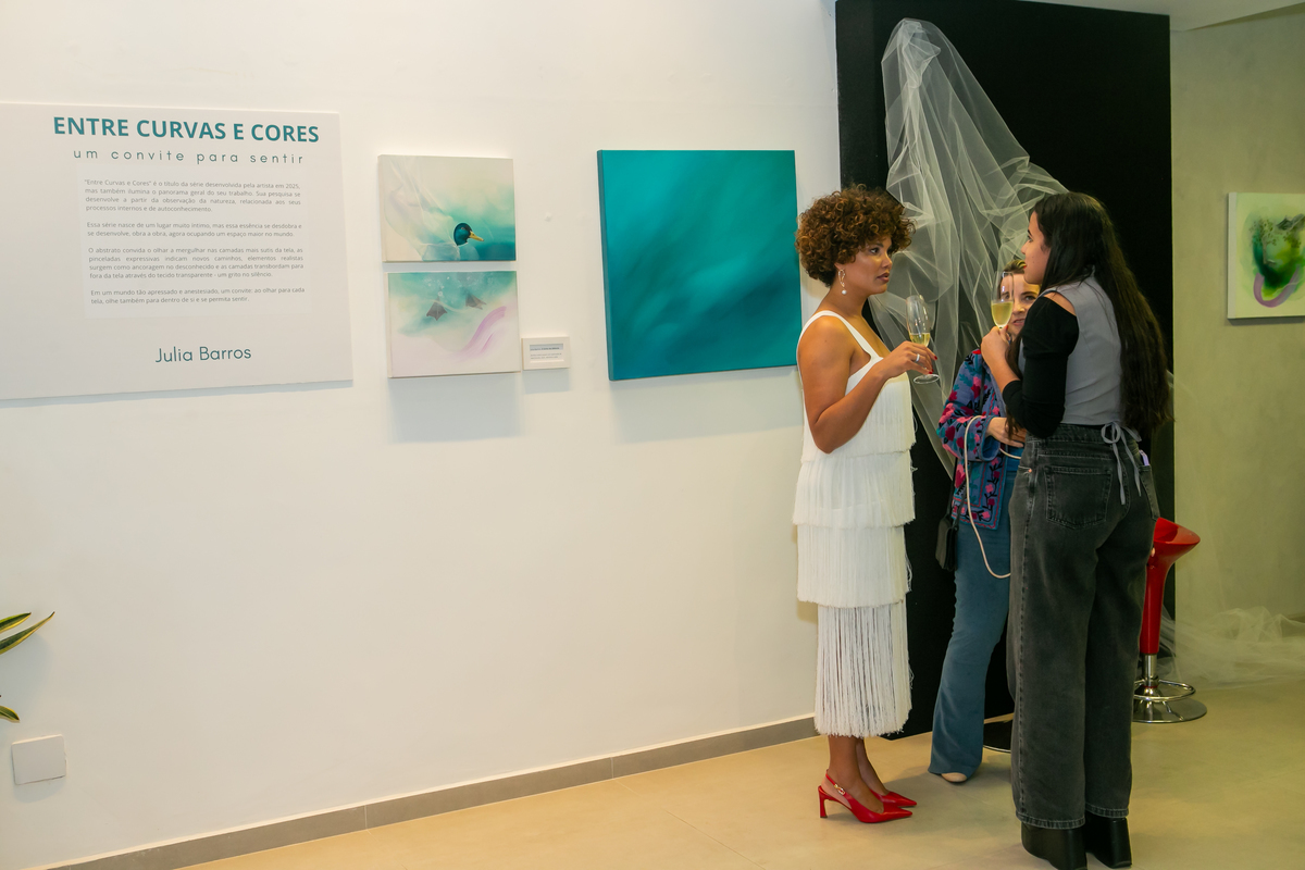 A mostra “Entre Curvas e Cores” nasce em um momento muito especial, revelando uma fase madura e vibrante da artista, que traduz emoções em traços e tonalidades cheios de vida.